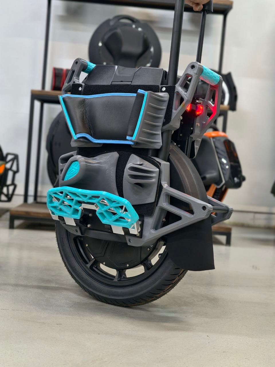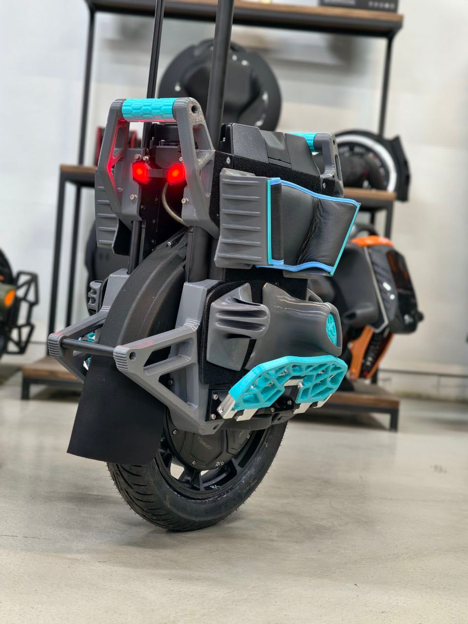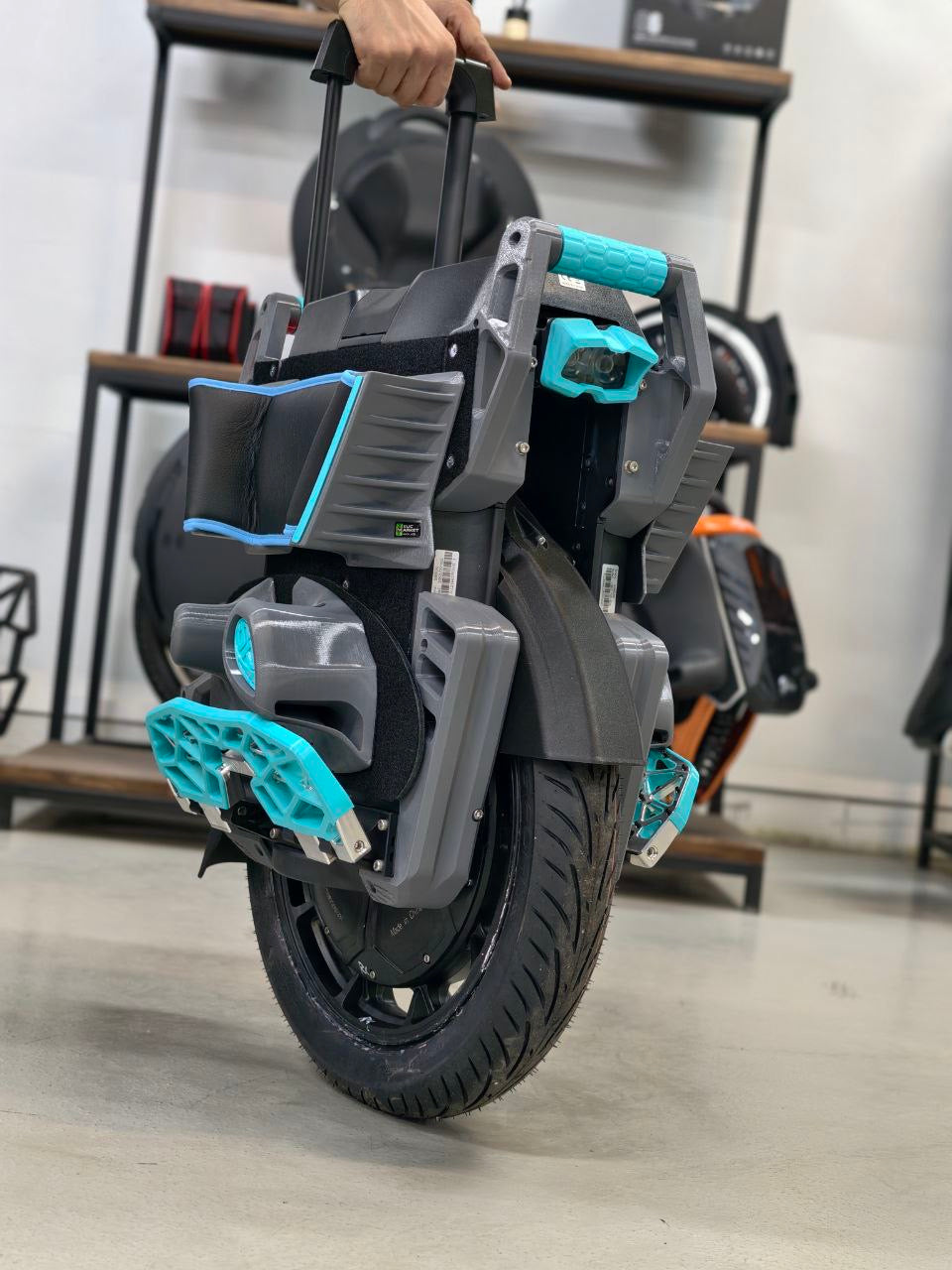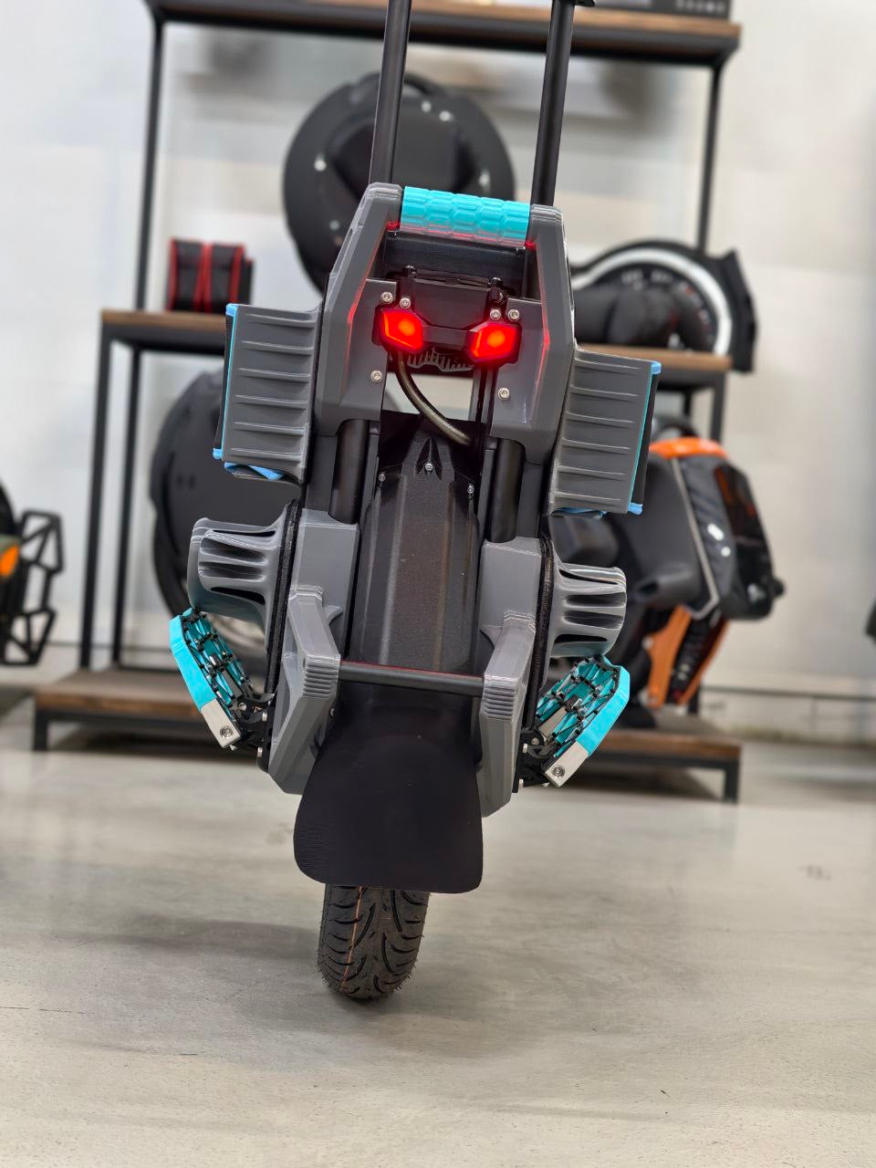 Unleash versatility and style on the trails with the Custom Gray Lynx, a boldly customized Veteran Lynx electric unicycle featuring an eye-catching gray base with blue inserts—perfect for urban explorers and off-road daredevils who crave adaptability. This mood-shifting beast pairs seamlessly with red, neon green, or orange accents for personalized flair, all while delivering rugged performance in a 88 lb magnesium alloy frame. Powered by a massive 2,700Wh 151V Samsung 50S battery, it boasts up to 100+ miles of range, a blistering top speed of 55 mph, and a 3,200W motor (8kW peak) that conquers 35° inclines with ease—ideal for long hauls, technical jumps, and everything in between.