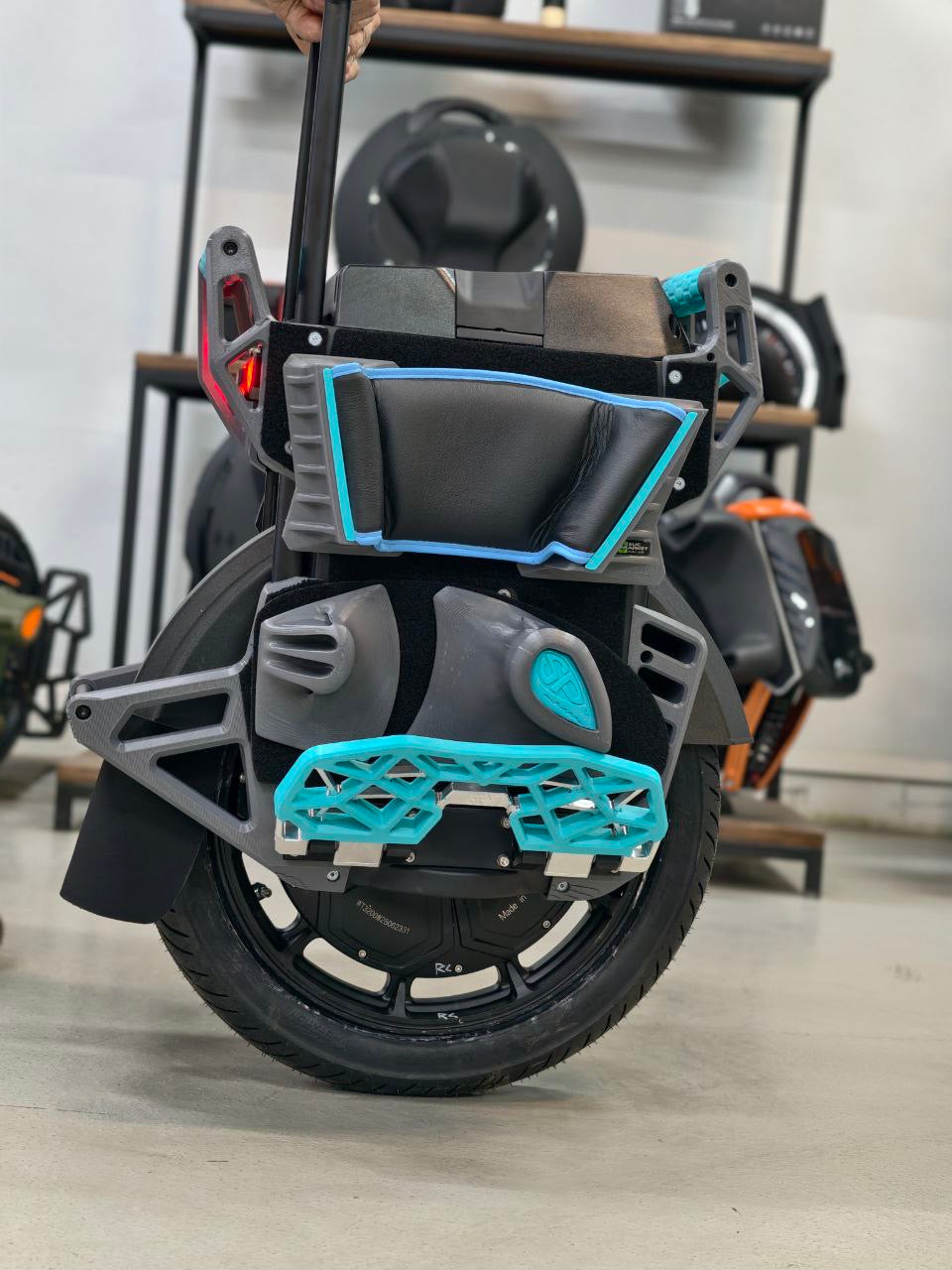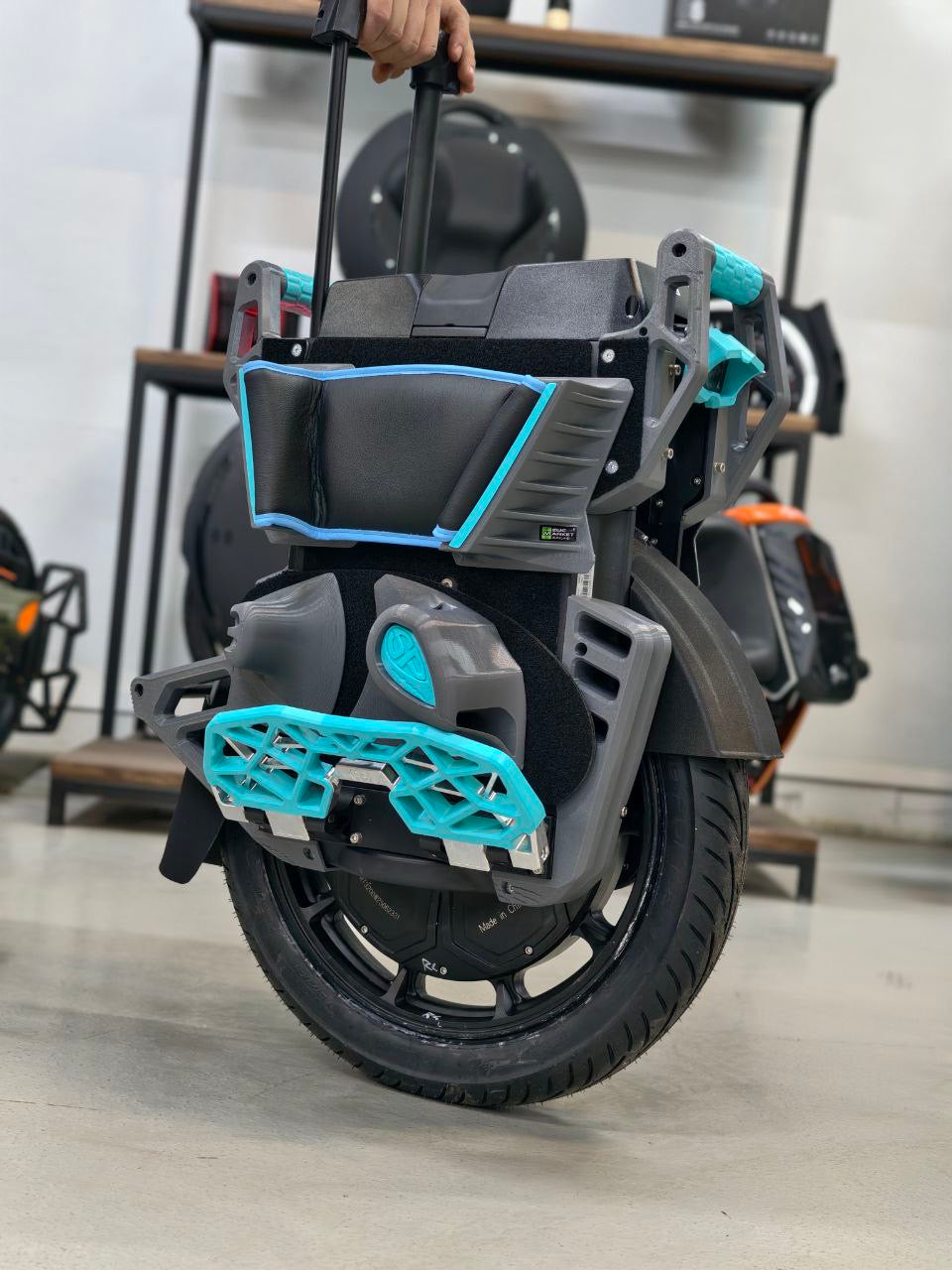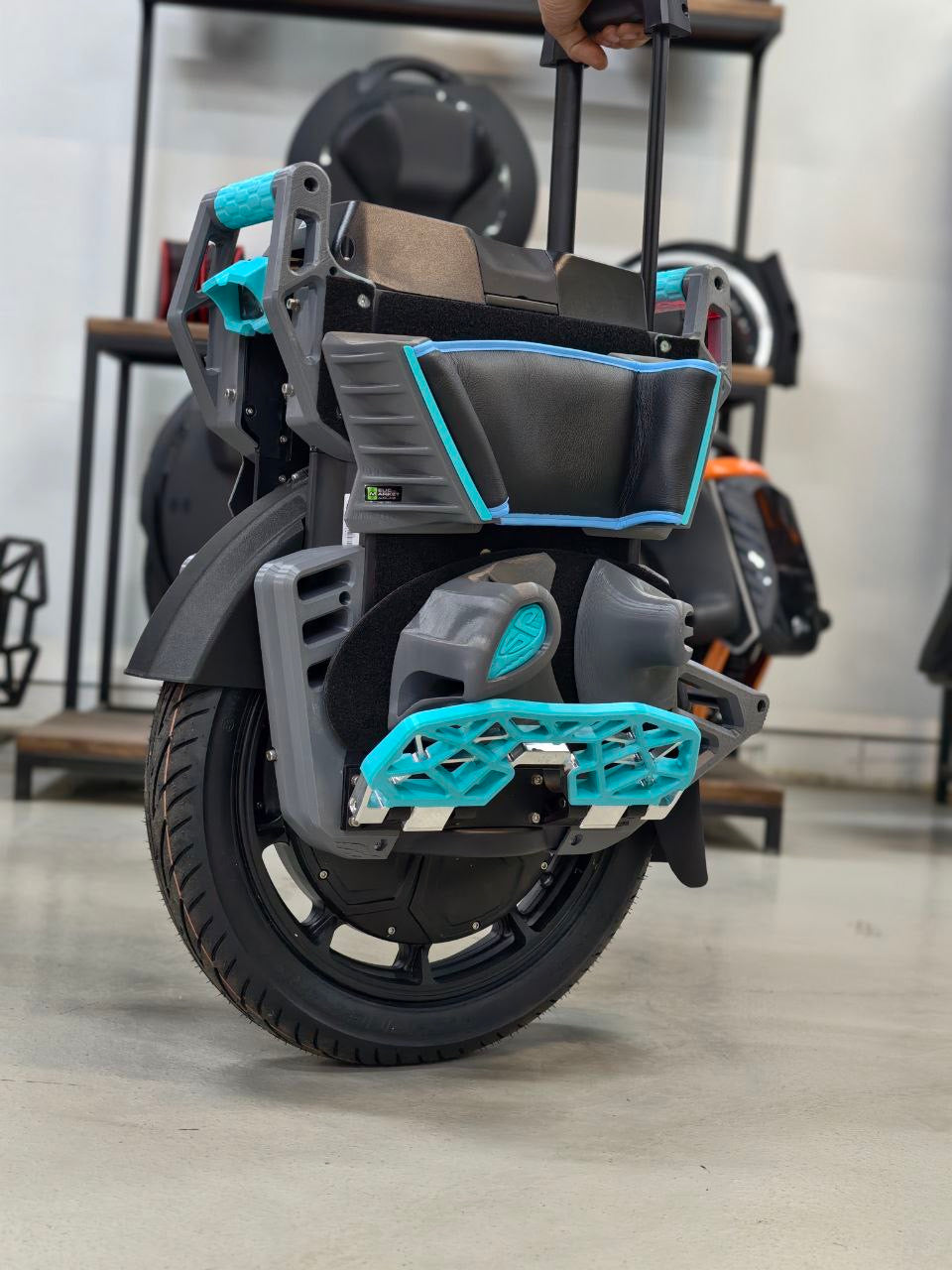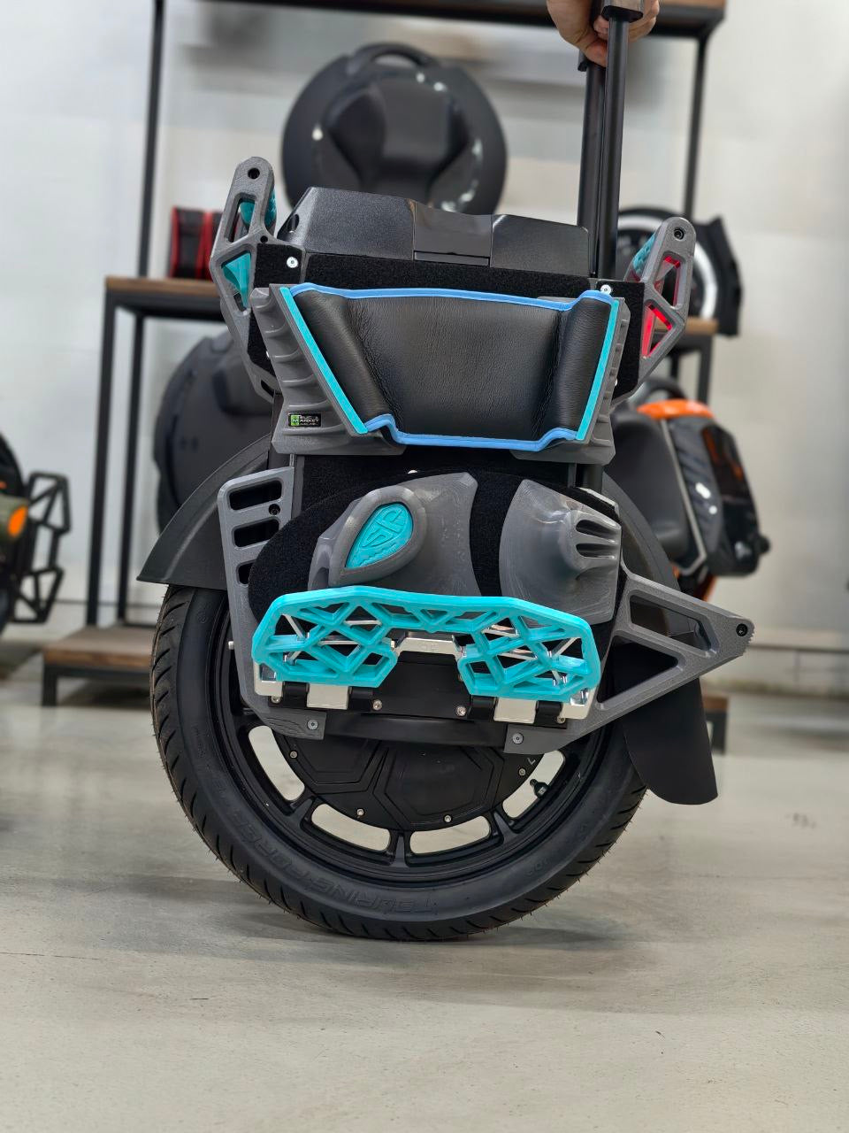 Unleash versatility and style on the trails with the Custom Gray Lynx, a boldly customized Veteran Lynx electric unicycle featuring an eye-catching gray base with blue inserts—perfect for urban explorers and off-road daredevils who crave adaptability. This mood-shifting beast pairs seamlessly with red, neon green, or orange accents for personalized flair, all while delivering rugged performance in a 88 lb magnesium alloy frame. Powered by a massive 2,700Wh 151V Samsung 50S battery, it boasts up to 100+ miles of range, a blistering top speed of 55 mph, and a 3,200W motor (8kW peak) that conquers 35° inclines with ease—ideal for long hauls, technical jumps, and everything in between.