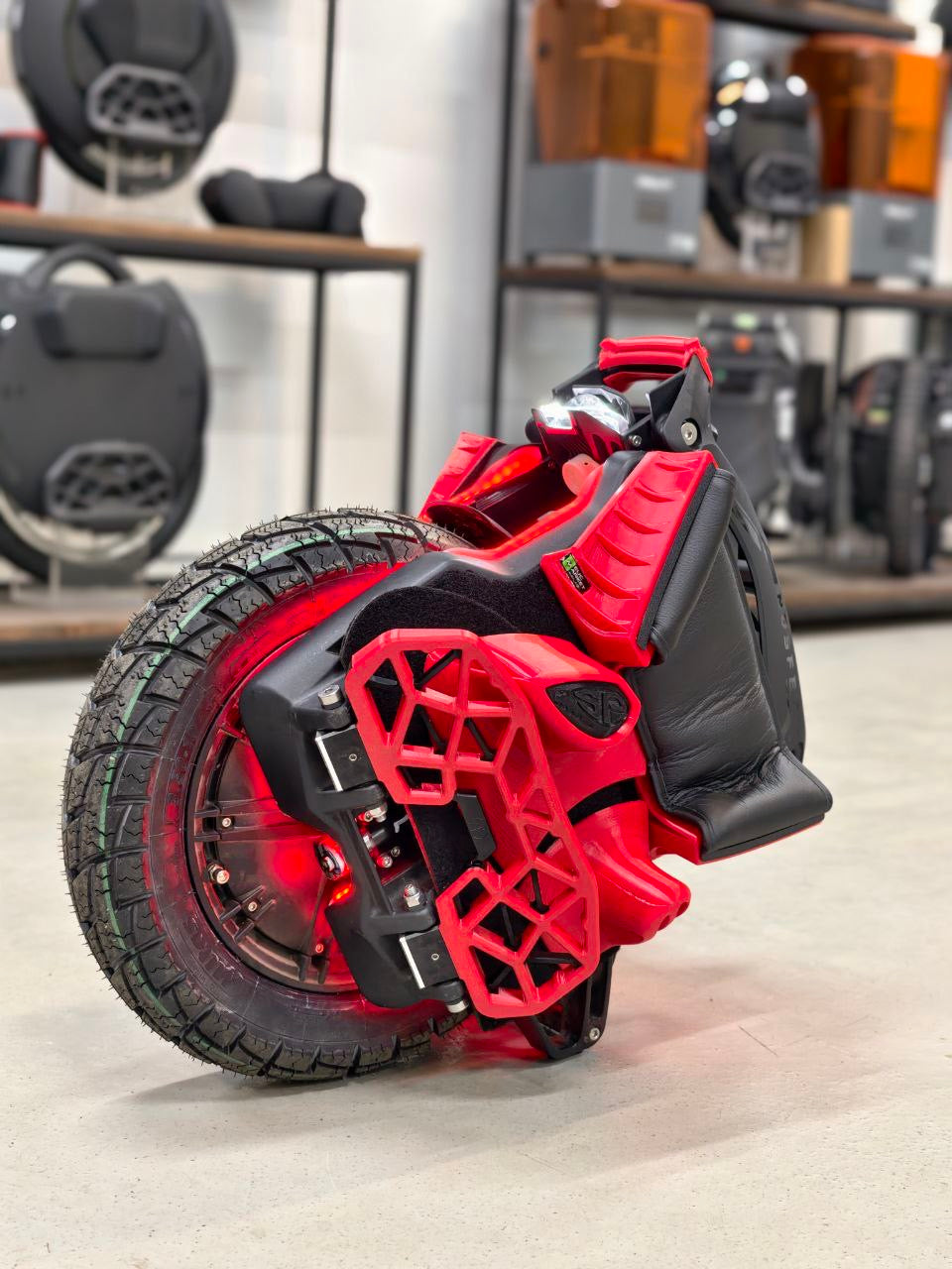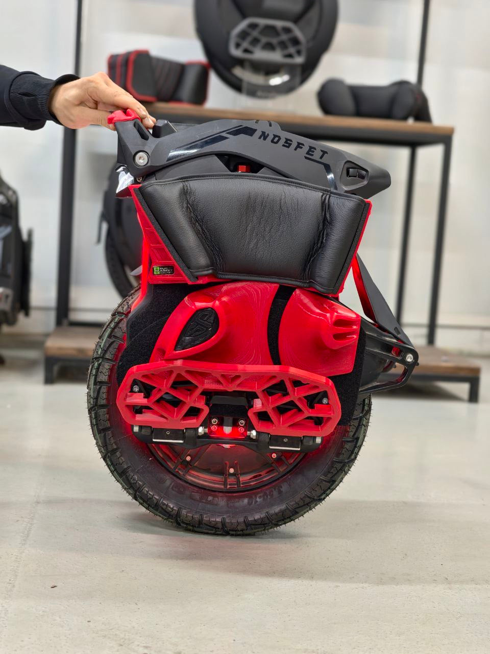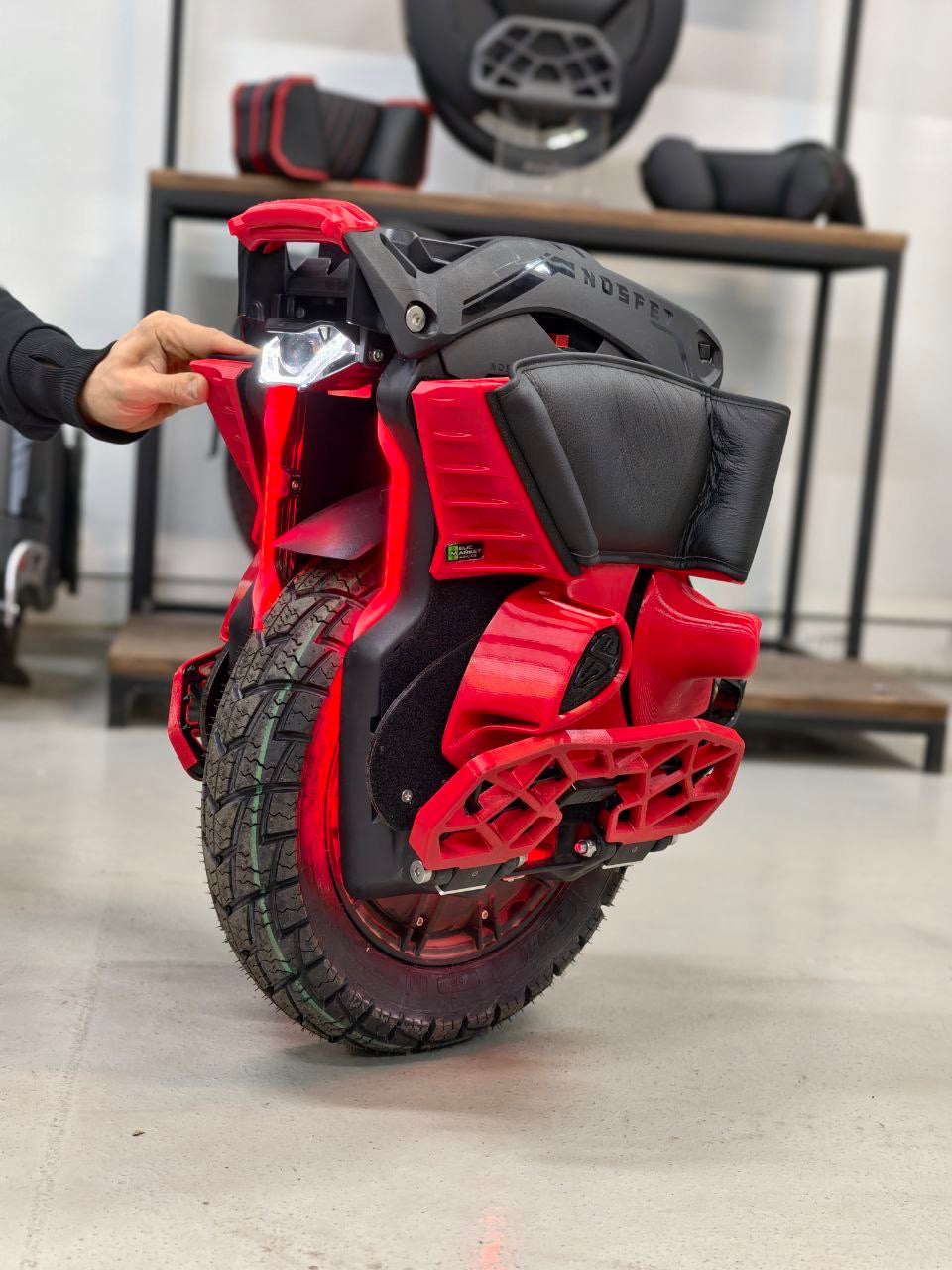 Elevate your ride with the Red Devil, a meticulously customized Nosfet Aero electric unicycle designed for adrenaline-fueled urban adventures and precision jumps. This compact powerhouse combines cutting-edge suspension, durable components, and aggressive styling to deliver unmatched control, comfort, and flair. Weighing in at just 55 lbs with a 1,110Wh battery, the Nosfet Aero offers up to 60 miles of range, a cruising speed of 35 mph, and a top speed of 90 km/h—perfect for commuters, trick enthusiasts, and off-road explorers alike.