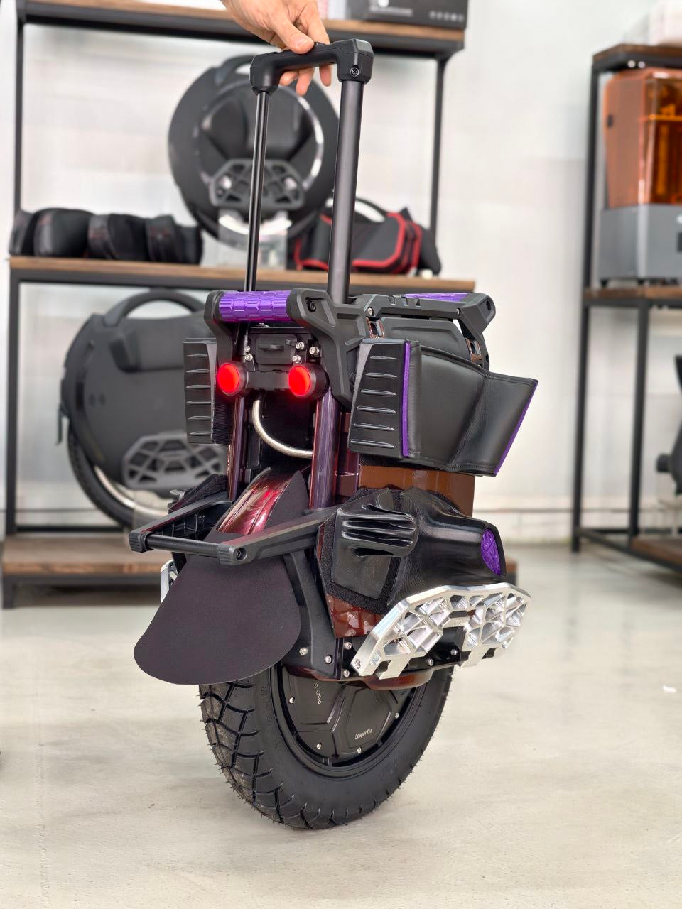 Ignite your ride with the vibrant Veteran Patton S 50S “Cherry Purple” Custom Edition, a bold and powerful electric unicycle (EUC) now available at Unicycle Mart. This high-performance model features a 126V system, a 2,220Wh Samsung 50S battery, and a 3,000W motor (7kW peak), delivering speeds up to 70 km/h (43 mph) and a real-world range of 65–85 km. Equipped with an 80mm FastAce hydraulic suspension featuring progressive coils, CNC motor brackets, and a lightweight 7071 aluminum alloy frame (~37.1 kg/81.8 lbs), the Patton S offers exceptional torque, stability, and comfort for urban commuting, off-road trails, and dynamic maneuvers. The “Cherry Purple” edition captures the essence of fresh cherries with a striking purple vinyl theme, complemented by premium accessories for enhanced grip, protection, and style.