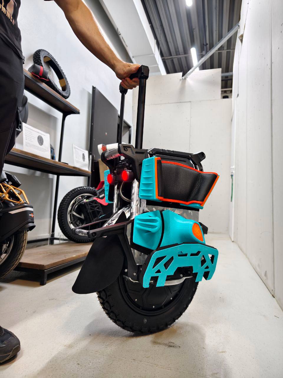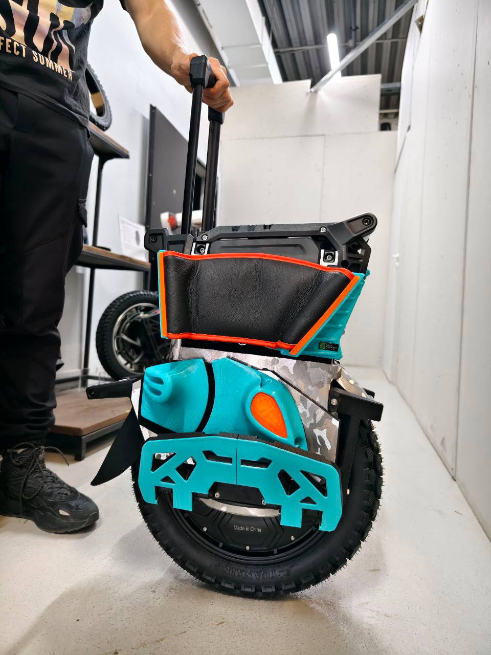 • Lower Panels for Veteran Patton S Unicycle + Vinyl Wrapping: Durable polycarbonate lower panels pre-wrapped in metallic camouflage vinyl, providing robust protection against impacts, debris, and environmental wear while maintaining the custom theme.